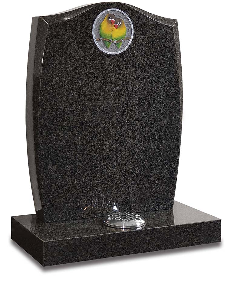 The Beauvale memorial features a gorgeously polished African dark gray granite, with the imagery of the dual lovebirds makes this a peace perfect for any loved one.