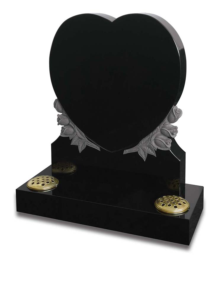 The Brinsley Heart memorial is a charming piece that comes in either polished black granite, or volga blue granite. It features a softly carved heart sitting atop a bet of carved roses.