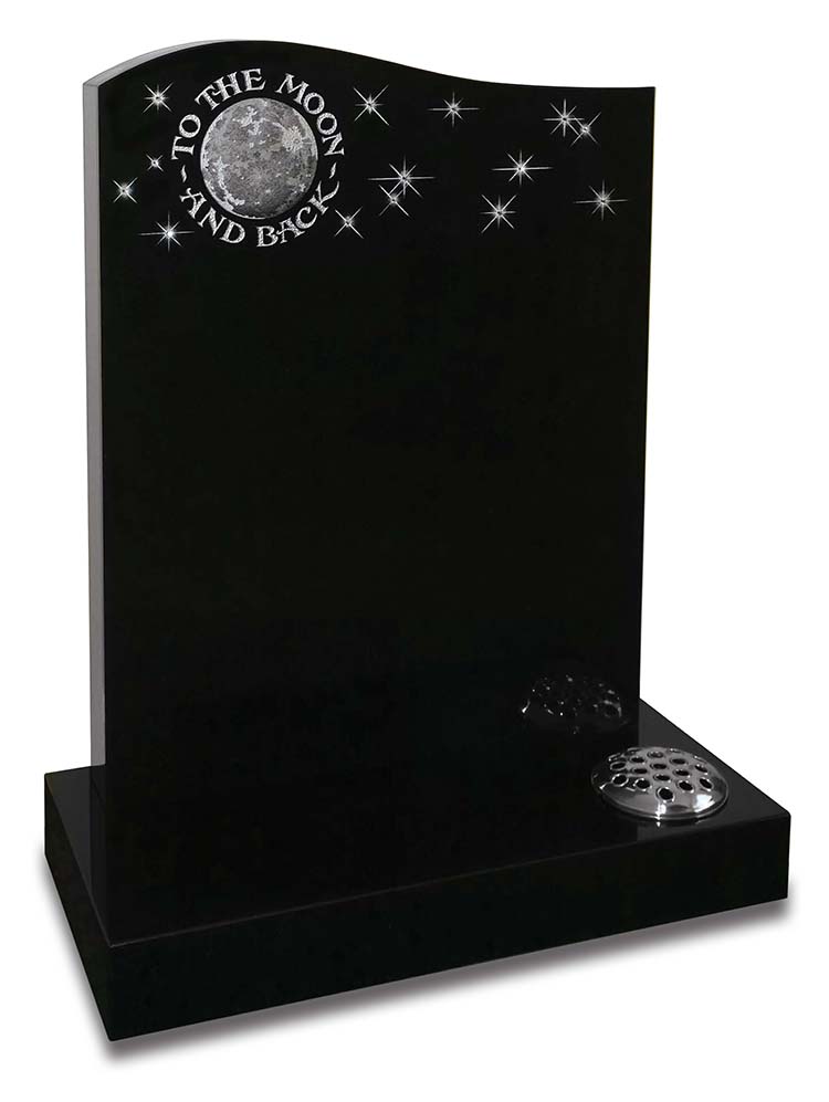 This swooping memorial is made from polished black granite and features accents made from 100% Swarovski crystal. The ‘To The Moon & Back’ design showcases endless love even beyond this lifetime.