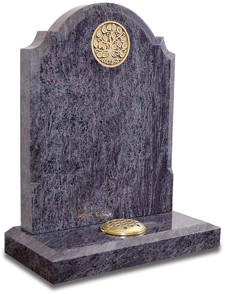 This traditionally shaped bahama blue granite memorial is perfectly accented with a gold leaf tree engraving as the centrepiece. This tree is designed to resemble the classic ‘Tree of Life’, and is perfect for any occasion.